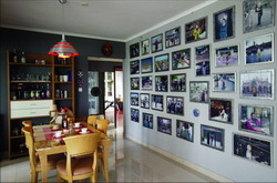 用照片裝飾墻壁已經(jīng)成為人們的習(xí)慣。過眼云煙的色彩把我們的視覺變得十分疲勞,許多人在酒吧茶坊中領(lǐng)略過黑白照片的魅力,不妨把這種創(chuàng)意搬回家,用黑白照片布置自己的居室,或許會收到事半功倍的效果。從總體表現(xiàn)的效果看,黑白照片會帶來一種懷舊感,有一種沖擊視覺的效果。在色彩豐富的背景下,黑白照片反而會因其簡單的色調(diào)而更引人注目。