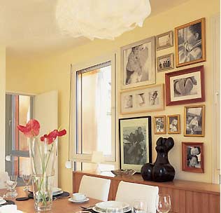 每一張照片都有一個(gè)故事。周末的時(shí)候,一家人圍坐在餐桌旁,邊吃飯邊話說(shuō)當(dāng)年,合著窗外暖暖的陽(yáng)光,其樂(lè)融融。幾乎貼滿(mǎn)墻壁的照片,沒(méi)有什么規(guī)則地排列著,花瓶、餐具、桌椅等物品雖然很多,看似復(fù)雜,卻在顏色與形式上統(tǒng)一成對(duì)美好歲月的回憶和感謝。