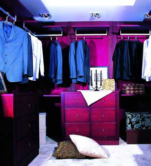 禮服、西褲、襯衫、皮鞋、領(lǐng)帶雖然面貌單一,卻是成功男士不可缺少的,所以妥善安置它們是男性衣帽間的重點(diǎn)。經(jīng)典的桉木、尊貴的黑檀木都是適合男士品位的衣帽間材質(zhì),再配以鋁鈦合金掛桿,顯得內(nèi)斂、穩(wěn)重、大氣。