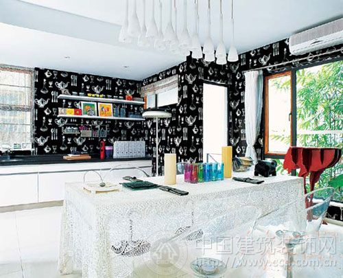 在大面積運用黑色與白色布置的房間中,營造時尚、可愛的感覺,一定不能缺少充滿設(shè)計感的高級派產(chǎn)品,椅子、燈具、餐具給餐廚空間帶來了大量的幾何圖形,既代表著高品質(zhì),又帶來與眾不同的時尚感,打造出具有創(chuàng)意的、新鮮的靈動空間。同時通過另一種不同的自由而任性的布置,令不易出彩的空間更加時尚而可愛。