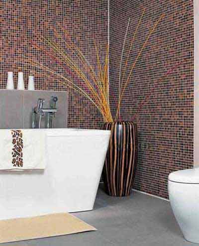 棕色給人一種沉穩(wěn)、高貴之感,大面積的棕色馬賽克和造型硬朗的浴具搭配,營造出平穩(wěn)卻不乏生動的空間。以下面的例子為榜樣,現(xiàn)在就拆解棕調(diào)衛(wèi)浴的打造招數(shù)!