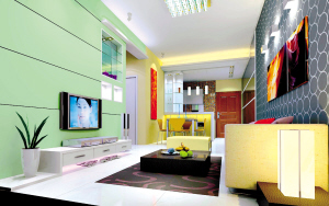 這是一對新婚青年家庭的客廳。設(shè)計師發(fā)現(xiàn)他們喜歡現(xiàn)代簡約略帶前衛(wèi)的風(fēng)格??紤]到房子面積屬小戶型,以及年輕人的經(jīng)濟(jì)承受能力,設(shè)計師明庭中為他們設(shè)計了色彩明麗、現(xiàn)代前衛(wèi)的裝修(下圖)。