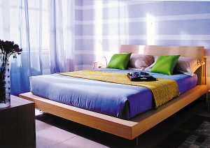 藍色床品、藍色窗簾和藍白相間的墻面,讓人聯(lián)想到“揚帆遠航”時那涼風撲面的感覺。床頭柜和床具選擇原木材質(zhì),傳達出涼爽親切的特質(zhì)。地毯、靠枕只選擇冷色和單色的款式。別忘了在臥室中點綴素雅花朵,為一片蔚藍加入雅致和馨香。