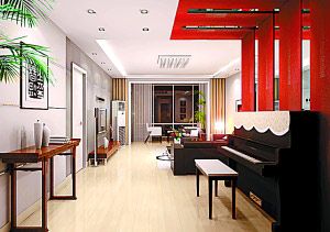 設(shè)計(jì)思路:這個(gè)休閑區(qū)為鋼琴區(qū),因?yàn)楹涂蛷d餐廳相連,所以想到要在這個(gè)地方做出明顯的分區(qū),同時(shí)要更符合鋼琴區(qū)的氣氛,于是從墻面到頂上選擇了跳躍性較強(qiáng)的四個(gè)紅色條形裝飾,更加準(zhǔn)確地定位了這個(gè)空間的性質(zhì),看起來(lái)效果更強(qiáng)。