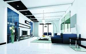 設(shè)計(jì)思路:這個(gè)客廳視覺上看較狹長(zhǎng),為突出它的寬度,特從吊頂上做縱向裝飾。為了讓空間感強(qiáng)烈,采用白色長(zhǎng)條形吊頂縱向鋪開,以黑色方形間隔。重復(fù)的多個(gè)吊頂造型能給墻頂帶來(lái)一種動(dòng)感,在視覺上很有沖擊力,黑白兩色吊頂?shù)奶幚恚彩拐麄€(gè)空間更現(xiàn)代更有個(gè)性。