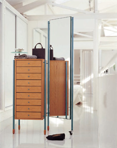 玄關(guān)面積不大,許多人會(huì)在這里擺放一個(gè)方正的大柜子,如果在柜子的造型上稍作改變,如將方正的柜子改成斜三角形、倒梯形……存儲(chǔ)的東西不少,卻顯得更輕巧。