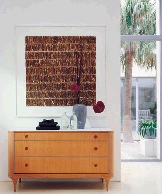 可更換玄關(guān)條案上的一條桌旗,或在古舊風(fēng)格的鞋柜、座椅上鋪設(shè)一塊具有異國(guó)情調(diào)的花布,或在墻面上懸掛一塊民族色彩濃烈或抽象的布藝,都可能打造令人耳目一新的風(fēng)景。