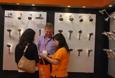英仕衛(wèi)浴新研發(fā)的多功能花灑展區(qū)受青睞