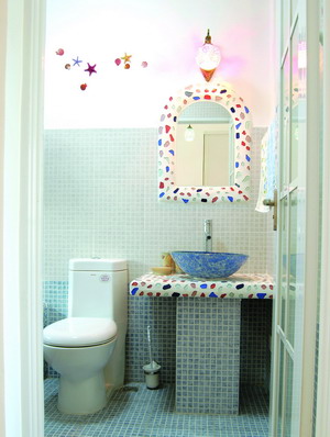 Lulu家兩個(gè)洗手間的關(guān)鍵詞都是:海洋、海洋!由于身處深圳這樣終年炎熱的地方,Lulu很想讓人一進(jìn)洗手間首先感覺到?jīng)鏊?