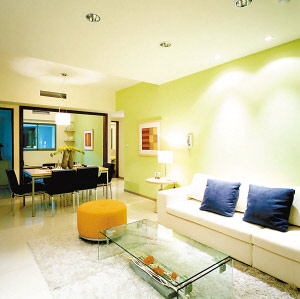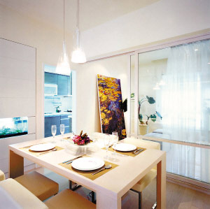 淺色系可以提升空間感,所以小戶型的整體裝修色調(diào)應(yīng)該是淺色的,包括墻面和家私,如米色、白色、粉綠色等,這些色彩具有擴(kuò)散性和后退性,能使房間給人寬敞明亮的感覺(jué)。小戶型的裝修要簡(jiǎn)單,因此墻面的色彩不要太多,可以通過(guò)裝飾來(lái)展示主人的品味。墻面可以用景深大的圖畫來(lái)做裝飾,這種圖畫也可以起到提升空間感的效果。如果是大幅墻面裝飾可以選用電腦大型輸出圖,因?yàn)樗鼉r(jià)格低廉,大面積使用時(shí)比較劃算。而且它的材質(zhì)是布面的,臟了用濕布擦擦就可以,容易清潔。電腦輸出圖是貼在墻上的,也很方便替換,當(dāng)你過(guò)一段時(shí)間想改變家居風(fēng)格時(shí),可以很容易改變。線條也可以營(yíng)造在視覺(jué)上延伸空間的效果,房間比較矮可以用豎紋的墻紙?jiān)黾涌臻g的高度感;房間比較窄則可以用橫紋的墻紙延伸房間的縱深感;選用條紋圖案的地板也有同樣效果。