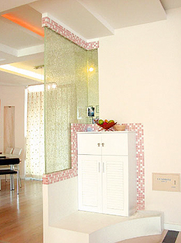 隔斷的作用其實(shí)不僅僅是劃分空間,而且也是聯(lián)系空間的重要手段,有時(shí)也可以用隔斷來做虛劃分。做隔斷的方法有很多種:以低形矮臺(tái)來限定空間,以低柜式成型家具的形式做隔斷體;以噴砂玻璃、壓花玻璃等通透的材料分隔大空間;以帶有不同花格圖案的透空木格柵屏作隔斷,既有古樸雅致的風(fēng)韻,又能產(chǎn)生通透與隱隔的互補(bǔ)作用等。