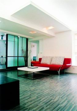 我家就是自己設(shè)計的彩墻,客廳是藍色,臥室是橙色,書房是綠色,衛(wèi)生間是白色,廚房是黃色,我家看起來就像個七彩屋。藍色客廳我搭配的是金屬家具和玻璃家具,酷酷的;其他房間為了保險,我選擇的是灰白色的木家具,附加一些與墻面顏色相近的小配飾,比如靠墊、坐墊、插花之類。