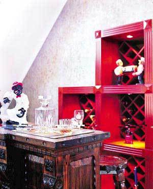 在客廳里設置一個小巧玲瓏的吧臺,已經成為一種時尚,但更多的是出于情調考慮。如何讓放置在客廳的吧臺給人一種異樣情調和華貴感覺,最經濟、最有效的辦法就是運用光線的錯落營造出華麗而浪漫的氣氛。這時不妨在客廳一角的小吧臺上方安裝幾盞射燈,再以名酒和別致酒杯精心點綴,一個風趣、搶眼的小吧臺,頓時就會展現在眼前。另外,在一個開放式的廚房里,細心的主人只需將餐桌稍加點綴,就可以把它變成一個簡單而漂亮的小吧臺?;蛘咴诓妥郎戏皆O計一道弧形窗口,配上精致小巧的罩燈,餐桌上再擺放些有情趣的藝術品,色彩上再強調一些現代感元素……既實用又有情調的吧臺立刻就會給餐廚空間增色不少。
