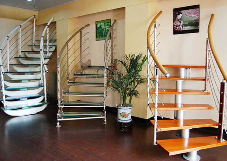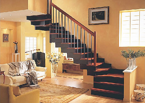 這實(shí)際上是木制品和鐵制品的復(fù)合樓梯。有的樓梯扶手和護(hù)欄是鐵制品,而樓梯板仍為木制品;也有的 是護(hù)欄為鐵制品,扶手和樓梯板采用木制品。選擇這種樓梯的客戶也不少,比起純木樓梯來,這種樓梯似乎 多了一份活潑情趣?,F(xiàn)在,樓梯護(hù)欄中鍛打的花紋選擇余地較大,有柱式的,也有各類花紋組成的圖案;色 彩有仿古的,也有以銅和鐵的本色出現(xiàn)的。這類樓梯扶手都是度身定制的,加工復(fù)雜,價(jià)格較高。鑄鐵的樓 梯相對(duì)來說款式少一點(diǎn),一般廠商有固定制造的款式,客戶可以從中選擇。色彩可以根據(jù)客戶要求加工。比 起鍛打樓梯,鑄鐵樓梯顯得略微穩(wěn)重。這類樓梯價(jià)格比鍛打的要便宜一點(diǎn)。
