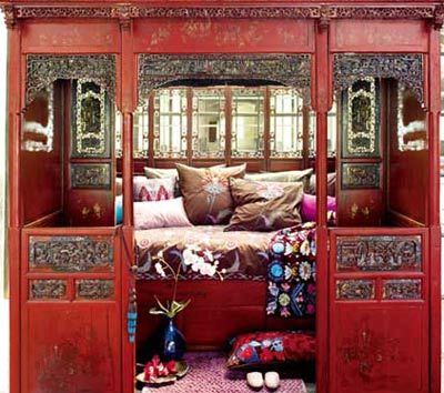 比如,中國的古老的大床,就是一種非??茖W的產品。這種床統(tǒng)稱架子床??煞譃椤杆闹病?,「六柱床」。其它變體形式較多,如月洞門罩架子床等。它三面有40公分高的圍欄,床口兩邊還有40公分寬的圍欄,只留1.2米左右門洞上落床。