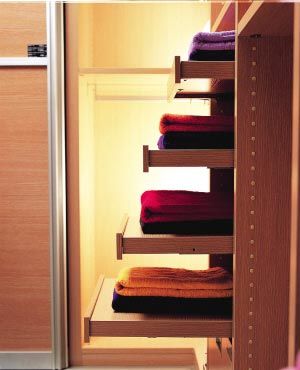 襯板:襯衫是一個(gè)男人的第二張面孔,專為高級(jí)襯衣設(shè)計(jì)的襯板滿足了各種不同款型襯衫存放的需要。將男士的襯衣放在帶滑軌的推拉襯板中,搭配時(shí)一目了然,清晰方便。