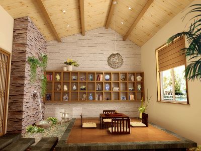 飲茶,有隨性之說,符合心境,求一份真實和簡單,所以,一般茶室設計相對簡單,輕裝修而不重裝飾。一處茶幾,幾個方凳,一套喜歡的茶具足以。茶室的風格有中式、日式、田園和懷舊等風格,設計可以依據主人的性格和偏好自由地選擇,但同時也要注重與室內整體裝飾風格協調。