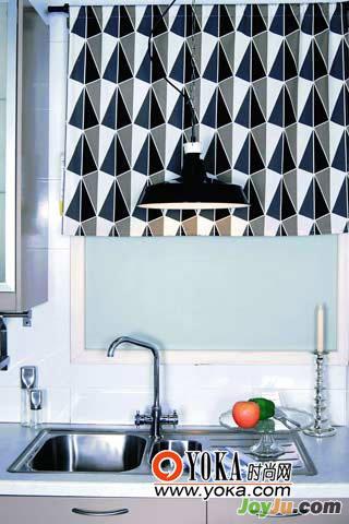 11.窗簾不一定都是長(zhǎng)可曳地,根據(jù)實(shí)際需要,長(zhǎng)度靈活調(diào)整,半簾在廚房就很實(shí)用。廚房對(duì)私密性的要求不高,因此,此處用了長(zhǎng)度僅為60厘米左右的半簾,廚房一般都不是南北向的,所以光線不至于太強(qiáng)。半簾在有限度遮擋部分光線的同時(shí),不至于遮蔽所有視線,在廚房勞作時(shí)還能看到一些窗外的景物,愉悅廚房心情。