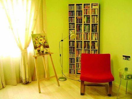 調(diào)色術 色彩被確認有調(diào)節(jié)情緒的功效。利用色彩來調(diào)節(jié)小空間的氛圍,往往能起到意想不到的作用。一般來說,淺暖色具有延伸空間的功能。因此,最保險的配色是:墻淺、地中、家私深,天花板的顏色淺于墻面或與墻面同色??傊瑓f(xié)調(diào)是最基本的要求,盡可能在色彩的選擇上采用同一色系,避免強烈的視覺沖擊。忌諱的是在墻壁上進行過多材質(zhì)和過多色彩處理。