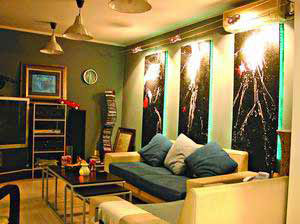 ▲墻面:空中閣樓家庭公社點(diǎn)評(píng):裝修的時(shí)候客廳外沿處加了一個(gè)閣樓,楊先生在這塊墻面上加了一塊玻璃,里面插了一些塑料竹子,這樣就很好地掩蓋了墻面原有的缺陷。