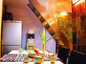 其實(shí)小亦有小的好處,假如是一個(gè)三口之家,一個(gè)六七平方米的門廳,沒(méi)有必要為求“大”而冒險(xiǎn)??梢园阉脑斐梢粋€(gè)很精致的餐廳,不要擺放過(guò)多的家具,但綠色植物必不可少,反而可能增添就餐時(shí)的融洽氛圍。