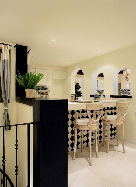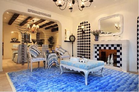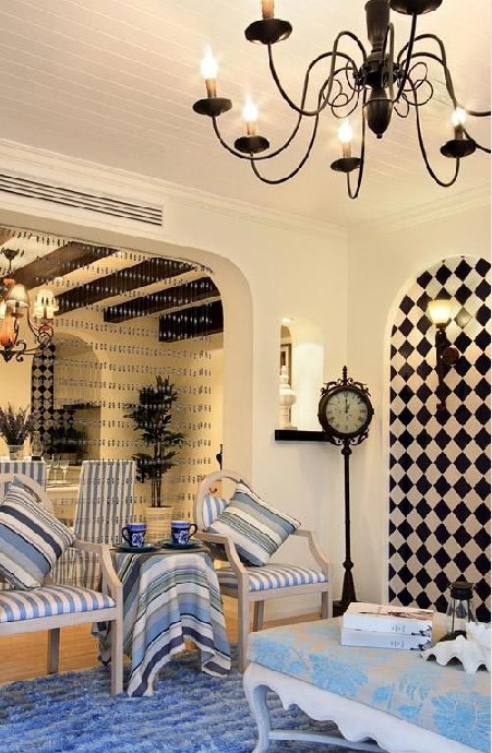 概要: 濃郁地中海特色淺淺的具有不同質感與色相的白與藍色條紋,在家具、墻面、頂棚、梁柱等各個層面化解延伸,使整個居室充滿了視覺的清新感,呈現(xiàn)質樸、唯美、慵懶的空間氣質。鐵藝的立式座鐘整個空間唯美浪漫?! ?*厚實的木質家具,蘭白相間的條紋布藝,優(yōu)美的吊頂弧線、典雅的吊燈似乎都在演繹著浪漫。獨特的設計讓空間得以擴展與延伸,格調更具浪漫情懷。