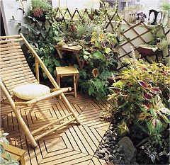 頂樓地面多為水泥地,感覺光禿禿的;露臺則多為磁磚材質(zhì),不用多加修飾。一般來說,要方便清理、維護,最好盡量維持地面原貌,才能減少積水、臟污的機會。不過若真想擁有花園的整體感,倒是可利用拆組方便的鋪面材,如木板、石片,景觀用的小石子則不建議大面積鋪上。而墻面即使不掛盆栽,加上籬笆也能修飾整體景觀。