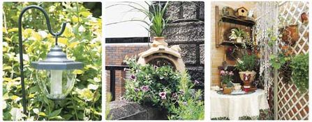 花園里有了夜晚的照明,才能延長你休憩的時間。假如你的頂樓原本就沒有安裝燈,又不想再接電線(有時電線在盆栽四周也有潮濕危險),那不妨用方便安全的太陽能戶外用燈,接滿太陽能可照明6~8小時,天氣不佳時白天可拿到室內(nèi)接受光源亦可。