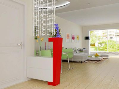 5、梁柱廳內(nèi)應(yīng)避免梁的阻障,可在其上改其結(jié)構(gòu)裝飾成各類美麗的造型。如傳統(tǒng)式拱門,天花板的延伸、繪花等,也可干脆分成兩個(gè)區(qū)域。或是在墻壁掛一面鏡子,象徵性的補(bǔ)足缺角,然后,當(dāng)成完整的房間來決定中心點(diǎn)。