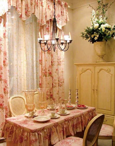 布藝流行田園風格,崇尚自然主義,強調(diào)從繁忙的都市回歸到田園的那種恬靜舒適感覺。設計風格大多源自大自然的元素,采用大自然花卉圖案、格子圖案,沒有太飽滿、濃烈的色彩,偏向于自然的清新顏色,營造自然浪漫的情懷。