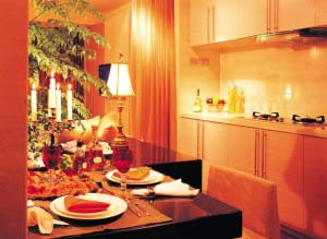 有人反對廚房做成開放式,大多數(shù)考慮的都是油煙問題。多數(shù)人認(rèn)為開放式廚房不能很好地阻擋油煙擴散,時間一長,家具上面就會積聚一層油煙,很難清潔。但是以現(xiàn)代人的生活方式,一般一天只有一頓飯會在家里做,而且也很少會用煎炸這些烹調(diào)方式,油煙不大,做開放式廚房也未嘗不可。