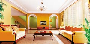 略顯有些簡約的吊頂,配合斜面拼花地板,使原本無生氣的居室平添了幾分俏麗;餐廳的木梁吊頂襯起拉平的頂面,大面積開敞餐廳帶來無拘束的感覺;門廳和樓梯過道的對稱門洞給家?guī)砹肆鲃拥臏剀埃辉陂_敞天棚的襯托下,開放書房沁出的那點(diǎn)淡淡的綠,有如置身于自然的熱帶林的環(huán)境中;臥室的開敞和仿舊淺綠木格是親近自然的表現(xiàn)。