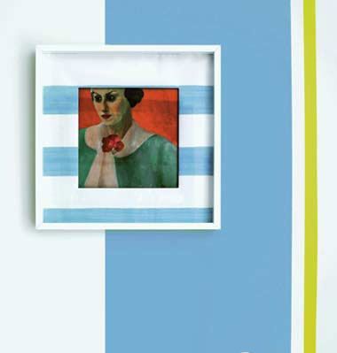 白底藍(lán)條紋的相框巧妙地鑲嵌于大幅藍(lán)白垂直條紋樣式的墻壁上,既形成水平和垂直方向的直接對(duì)比,又在顏色上相互呼應(yīng)。對(duì)墻壁而言,也許只需涂上幾條寬度各異的條紋圖案,整個(gè)房間便能更加立體、生動(dòng)起來(lái)。