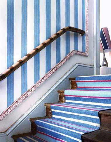 別出心裁的樓梯及墻面設(shè)計(jì)令人疑竇叢生,踏著五彩的地毯,樓梯的盡頭是否有著童話般的神秘與浪漫?樓梯扶手上繪以彩色條紋,更能突顯出木制感覺(jué),并與整個(gè)空間融為一體。樓梯和走廊這樣狹小的空間非常適合使用條紋裝飾。