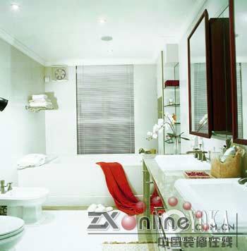 紅色是促使情緒起伏的顏色,如果置身其中,人難免激烈、亢奮而又容易疲憊。浴室的主人一定是富有**的,他用大量紅色來點(diǎn)綴家居中最本色的部分;但即使在浴室,也沒有放棄理性,冷靜的灰白恰如其分地約束了紅色的煥發(fā)。這里并不拒絕靈魂的燃燒,無形的節(jié)制卻又無處不在。白色令人聯(lián)想到無暇和純潔,浴室的主人在潛意識(shí)中追求的絕不僅僅是身體的一塵不染,他還傾向精神層面的自我凈化。