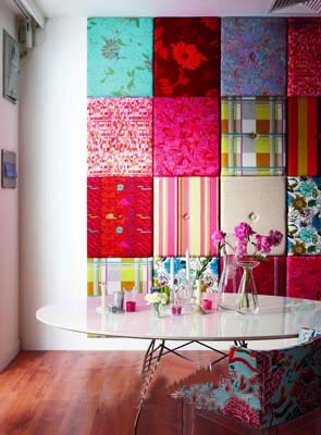 布藝的流行緊跟時裝的腳步,走在家居裝飾的前沿。軟裝對居室空間的改變更易操作且效果明顯。用布藝、海綿和裝飾扣制作的主題墻顏色鮮艷而時尚,可以結(jié)合不同的家具風格和空間功能適時更新,讓素白的墻面煥發(fā)新的光彩。從色彩、圖案與肌理等方面為空間的造型做鋪墊。