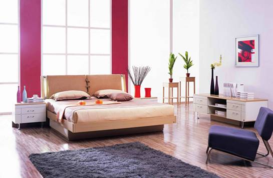 ☆如果習慣以床為娛樂中心,應該在裝修時就精心設計床背后墻面的花色,使之與家具統(tǒng)一,形成完整的視覺效果。