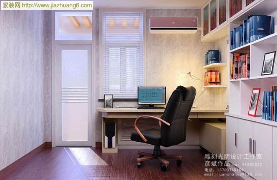 書房是一個工作空間,但絕不等同于一般的辦公室,它要和整個家居的氣氛相和諧,同時又要巧妙地應用色彩、材質變化等手段來創(chuàng)造出一個寧靜溫馨的工作環(huán)境。