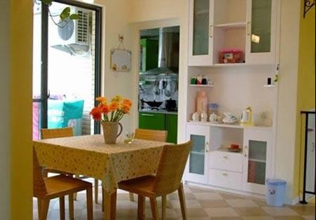 相同色系的小餐廳,黃色調(diào)的小桌面配以簡(jiǎn)潔的花朵別樣多彩!