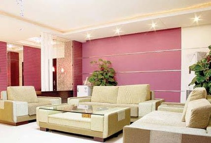 紫色背景墻最常用的地方是沙發(fā)背景墻。用紫色壁紙大面積鋪帖,只在柜式空調(diào)的后面留出相應(yīng)的白色部分,再用銀色金屬條橫著粘貼在壁紙上,既能保證整體色調(diào)的完整,又不會(huì)死板,而且銀色也是一種很高檔的顏色,整體看來(lái)很有品位。值得注意的是家具一定要選擇淺色的,不然客廳就會(huì)顯得很暗。