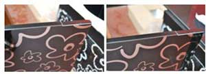 四看產(chǎn)品外觀:東鵬高檔浴室柜使用優(yōu)質(zhì)的4mm水銀鏡玻璃,經(jīng)過(guò)電腦雕花而成,粘貼在門板上,再加裝鋁材封邊,使玻璃更加牢固,產(chǎn)品更加高檔美觀;此外,東鵬浴室柜采用優(yōu)質(zhì)的石英石作臺(tái)板,具有更好的穩(wěn)定性,可抵抗?jié)饬蛩岷蛷?qiáng)堿的腐蝕,不掛臟積垢,易清潔,自潔性好;而假冒產(chǎn)品是使用普通的3mm鍍鋁鏡片,使用膠水粘貼在門板表面,沒(méi)有鋁材包邊,讓門板和玻璃得不到保護(hù),較容易出現(xiàn)脫落現(xiàn)象;劣質(zhì)產(chǎn)品的臺(tái)板是普通強(qiáng)化玻璃噴漆,表面易刮花,易出現(xiàn)水污。