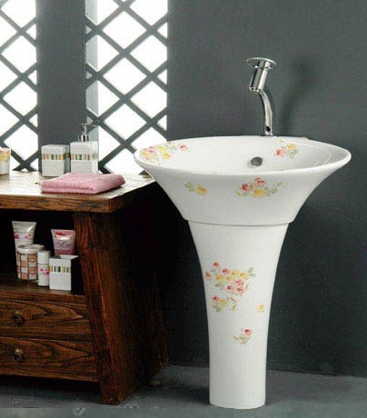 柱盆也稱立式柱盆,立式柱盆是獨(dú)立的,下面有一只與盆體相配套的柱子。有時(shí)這根柱子并不承受面盆的的重量,只是為了遮蔽下水管道。由于占用空間較少,所以一般多用于面積較少的衛(wèi)生間。