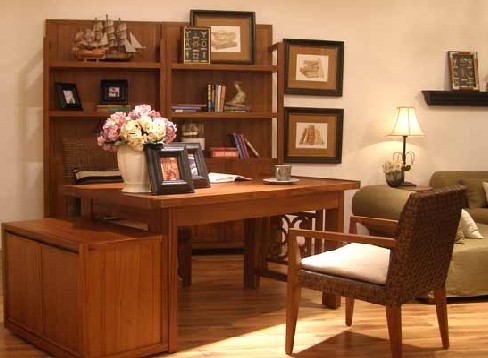 由于書房的功能特殊,因此它需要一種較為嚴(yán)肅的氣氛。但書房同時又是家庭環(huán)境的一部分,它要與其他居室融為一體,透露出濃濃的生活氣息。所以書房作為家庭辦公室,就要求在凸顯個性的同時融入辦公環(huán)境的特性,讓人在輕松自如的氣氛中更投入地工作,更自由地休息。