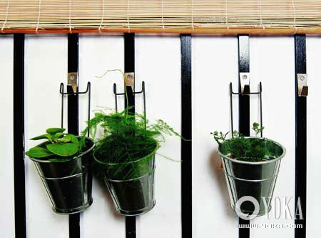 體積較小的小盆植物可以用一些懸掛式的花器掛在陽(yáng)臺(tái)欄桿上,既節(jié)約了空間,也豐富了變化。