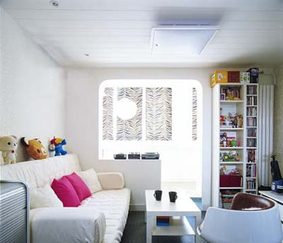 房間拐角處墻壁上的雙層書架,合理有效地利用了空間,并附加進(jìn)了客廳新的實(shí)用性功能有限空間,無限可能整套居室面積為52平方米,又是老住宅樓中的戶型,但經(jīng)過格局的大膽改造,實(shí)現(xiàn)了居室功能多樣化,空間利用最大化,設(shè)計(jì)巧妙實(shí)用化。為了加大整個(gè)空間的通透感,楊賽文拆掉了客廳與陽(yáng)臺(tái)之間的墻壁,增大了客廳的面積及采光。