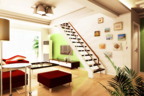 在進(jìn)入客廳的一瞬間,它們便飛快地在你眼前出現(xiàn),并快速排列,瞬間構(gòu)成一幅視覺強(qiáng)烈,明快而豐富的畫面,線條吊頂遮蓋著房頂眾多的過梁。