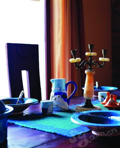 選擇藍(lán)色嵌銀杏葉的墻紙、藍(lán)橙相間的花葉百納布床蓋,搭配同樣明朗色系的燭臺(tái)、地墊、擺件,即使是少量的家具、大量的空間留白,也會(huì)給人帶來(lái)飽滿充盈的感覺(jué),讓你浮躁的心緒立刻平復(fù)下來(lái)。