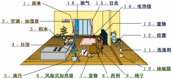剛剛裝修好的房屋、會(huì)從裝修材料和家具中散發(fā)出甲醛、刺激眼睛或產(chǎn)生異味、要注意通風(fēng)換氣,要注意結(jié)露后的水滴不要滴落到地板上。