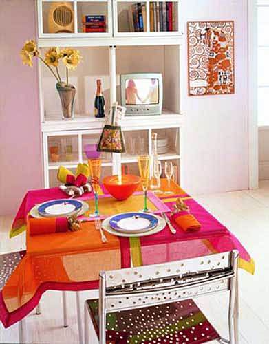 點綴:玻璃器皿,在白色的桌面上顯得晶瑩剔透,呈現(xiàn)玻璃最本質(zhì)的質(zhì)感和色彩,與動感的桌椅相結(jié)合,俏麗而時尚。