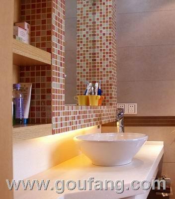 點評:洗手盆、座便器、淋浴房是衛(wèi)浴間必備的“三大件”,即使是小空間衛(wèi)浴間,這“三大件”也一樣也不能少。我們可以選擇入墻式龍頭、掛墻式臺盆、入墻式座便器和凈身器、入墻式花灑,這樣就可以留出更多的地面空間,也易于清潔。同樣,小衛(wèi)浴間也可以有浴缸,扇形前端浴缸就是不錯的選擇,占用的墻面面積較小,流暢圓潤的曲線外形更能體現(xiàn)設(shè)計感和獨特的眼光。如果是淋浴房的話,建議選擇中間開啟式雙開門的或者圓弧型的淋浴房。也可以購買淋浴房和浴缸結(jié)合在一起的產(chǎn)品,實現(xiàn)雙重功能,同時節(jié)省空間。